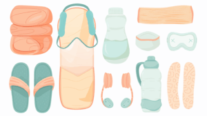 快適な睡眠をとるには「光」と「音」を遮ることが不可欠です。耳栓は低周波ノイズを軽減し、アイマスクは周囲の光をシャットアウトしてくれます。特に夜行便では必須のアイテム。私は耳にフィットする低反発素材の耳栓と、遮光性の高い立体型アイマスクを組み合わせています。蒸気で目元を温めるタイプのアイマスクはリラックス効果も高く、寝つきが良くなります。